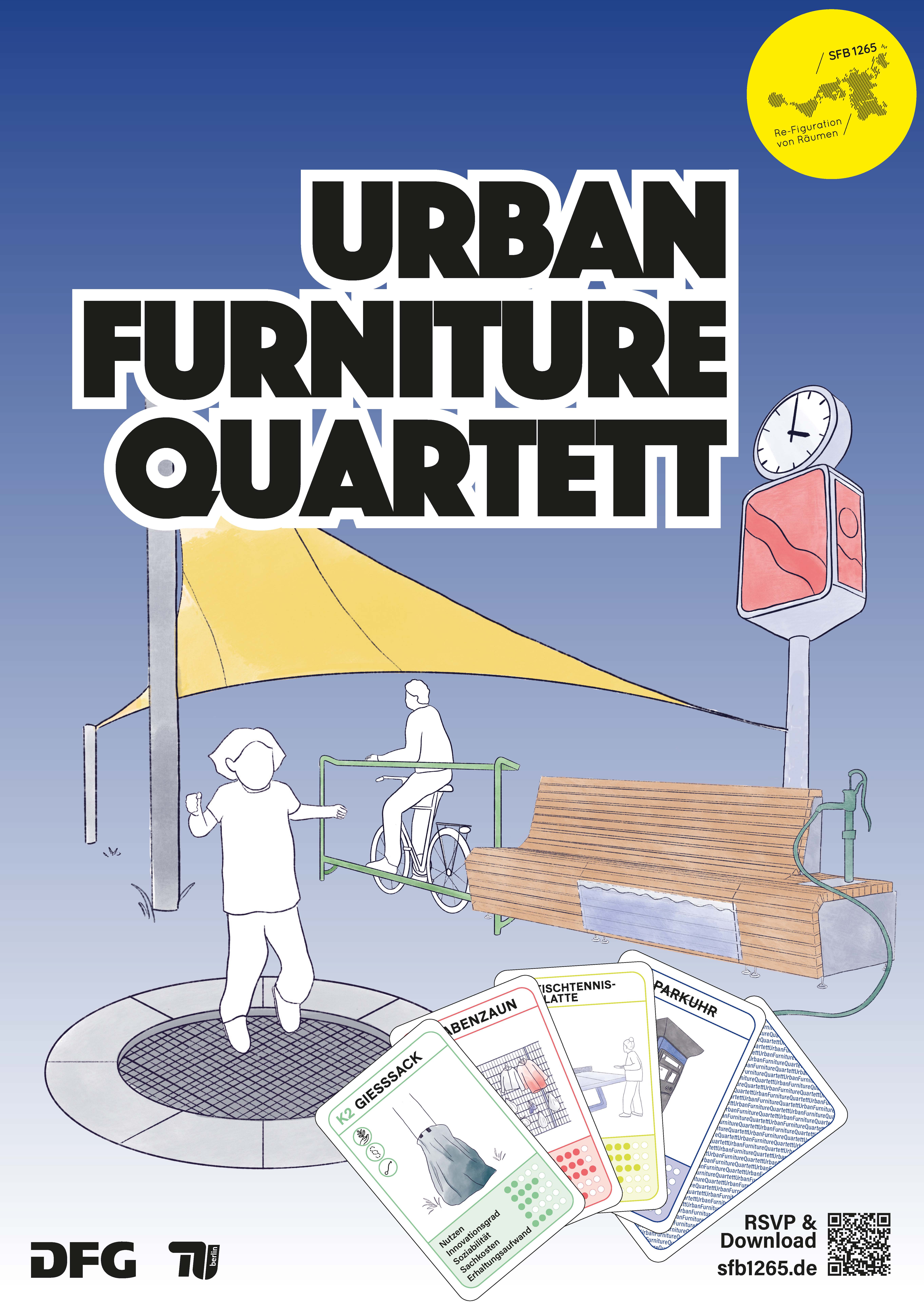 Dieses „Stadtmobiliar-Quartett“ lädt Interessierte dazu ein, sich mit den alltäglichen Objekten im urbanen öffentlichen Raum auseinanderzusetzen und spielerisch sich Wissen anzueignen. Diese Publikation umfasst Erläuterungen zu den Rubriken und Merkmalen der 36 ausgewählten Stadtmöbel, das Essay „Stadtmobiliar – Wege zur Gestaltung des urbanen Zuhauses“ sowie die DIN A4 DIY-Druckvorlage des Quartetts.