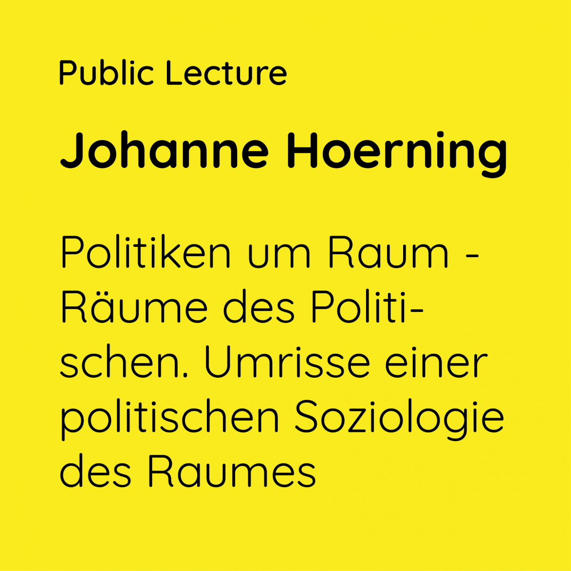 16:00 – 18:00 Johanna Hoerning: Politiken um Raum – Räume des Politischen. Umrisse einer politischen Soziologie des Raumes 14. Juli 2021 16:00 – 18:00 Johanna Hoerning: Politiken um Raum – Räume des Politischen. Umrisse einer politischen Soziologie des Raumes